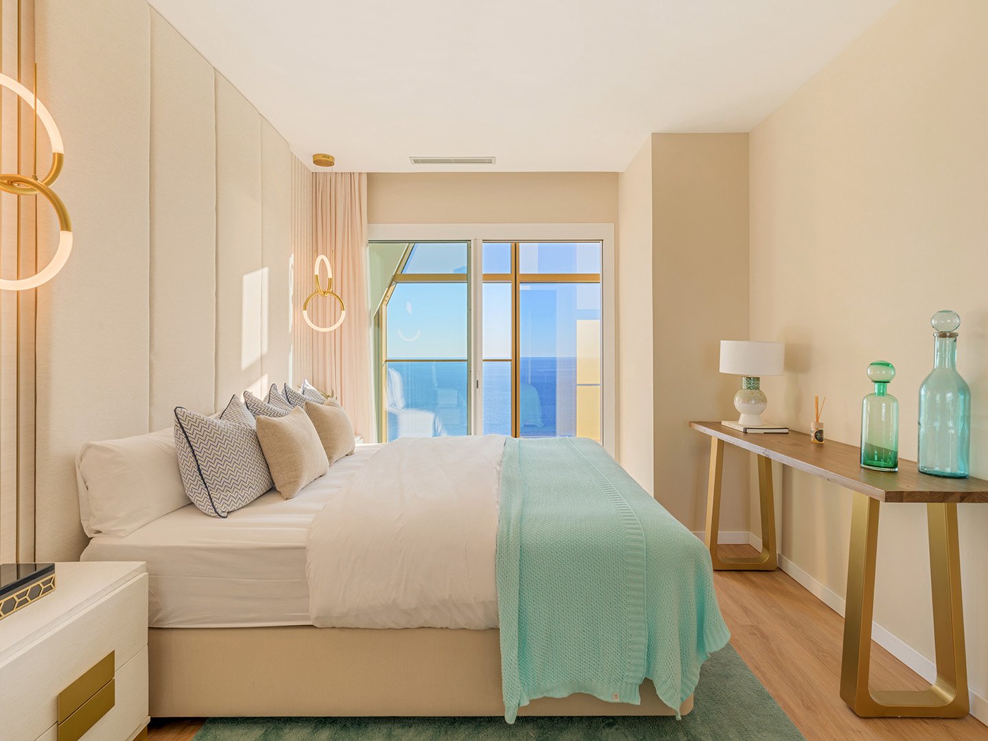 Cada una de las viviendas destaca por sus acabados de alta gama, amplios ventanales que inundan los espacios de luz natural y terrazas con orientación al mar, pensadas para aprovechar al máximo el entorno privilegiado de la Playa de Poniente.