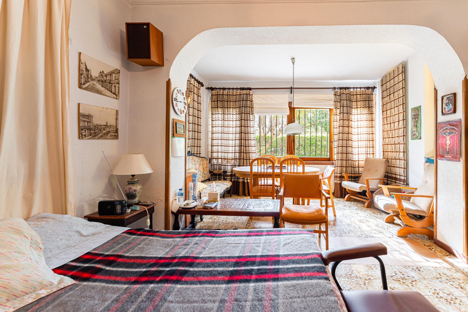 En esta planta encontramos una habitación y un amplio despacho, así como una sala de estar y un gran salón comedor, además de una cocina de grandes dimensiones desde la que se accede a dos sótanos habilitados como bodega y lavandería. Desde esta planta, que cuenta con un baño completo, se accede al amplio jardín, que tiene en su parte trasera una gran zona verde con solárium y piscina, además de varios trasteros y garaje.