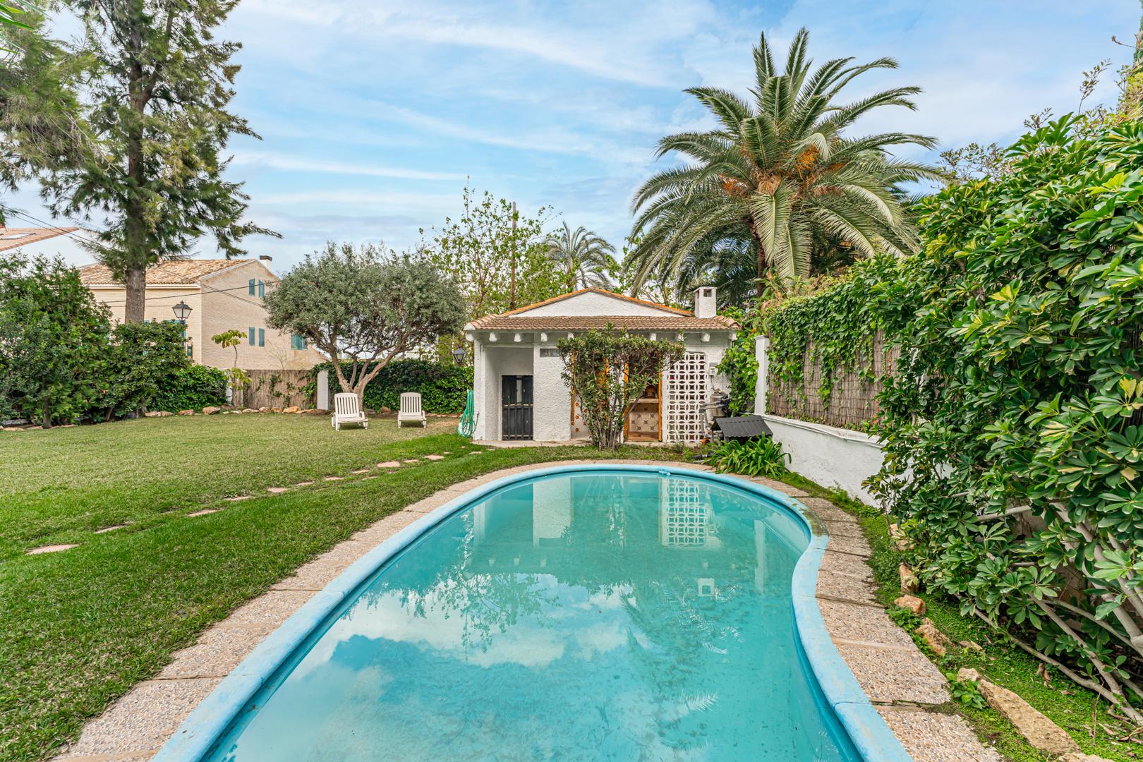 La casa, construida a principio de los años 50 y perfectamente acondicionada, está ubicada en una de las zonas más prestigiosas y tranquilas de Rocafort y goza de un gran valor arquitectónico.