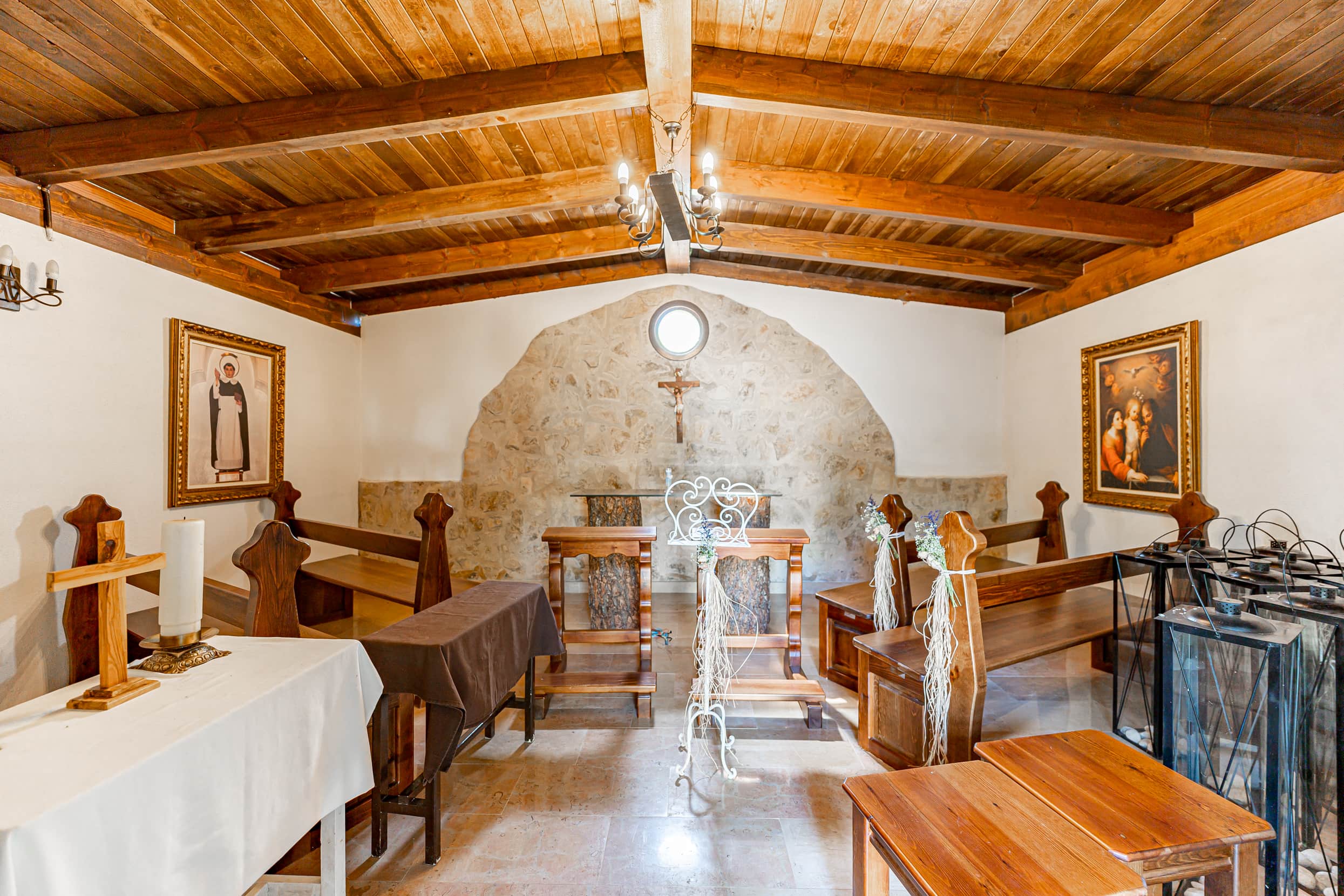 Por su parte, en la parte trasera del complejo, hallamos otro salón de banquetes, este con una capacidad para 500 comensales, equipado también con todos los servicios. Muy cercano al mismo se encuentra también una pequeña capilla , donde poder celebrar ceremonias.