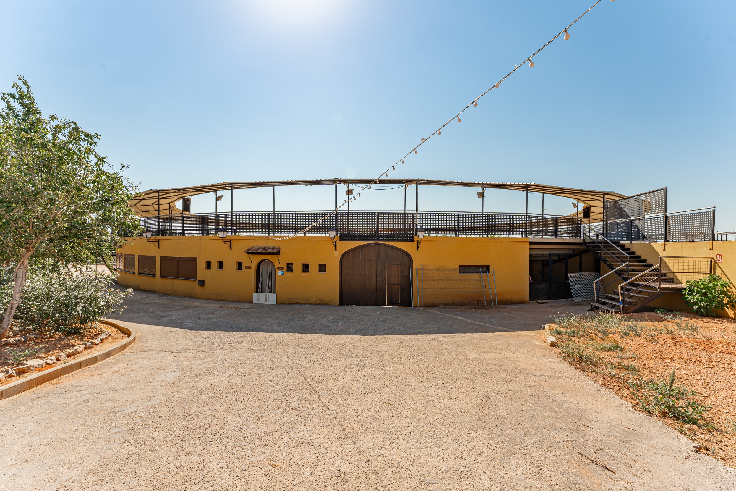 La finca se completa con una espectacular plaza de toros, con gradas con capacidad para 1500 personas y habilitada también para zona de conciertos y eventos con una capacidad total en el foso de 4500 personas.