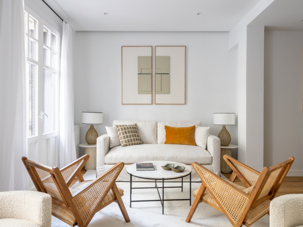 Bernado Luxury Houses presenta esta exclusiva vivienda reformada en la prestigiosa calle Claudio Coello 88, en el emblemático Barrio de Salamanca, Madrid. Ubicada en un edificio histórico de 1939, esta propiedad combina a la perfección el encanto del pasado con el confort moderno. Situada en la primera planta, esta vivienda interior de 101 m² catastrales destaca por su ambiente tranquilo y privado, ofreciendo un estilo de vida sofisticado en una de las zonas más codiciadas de la ciudad.