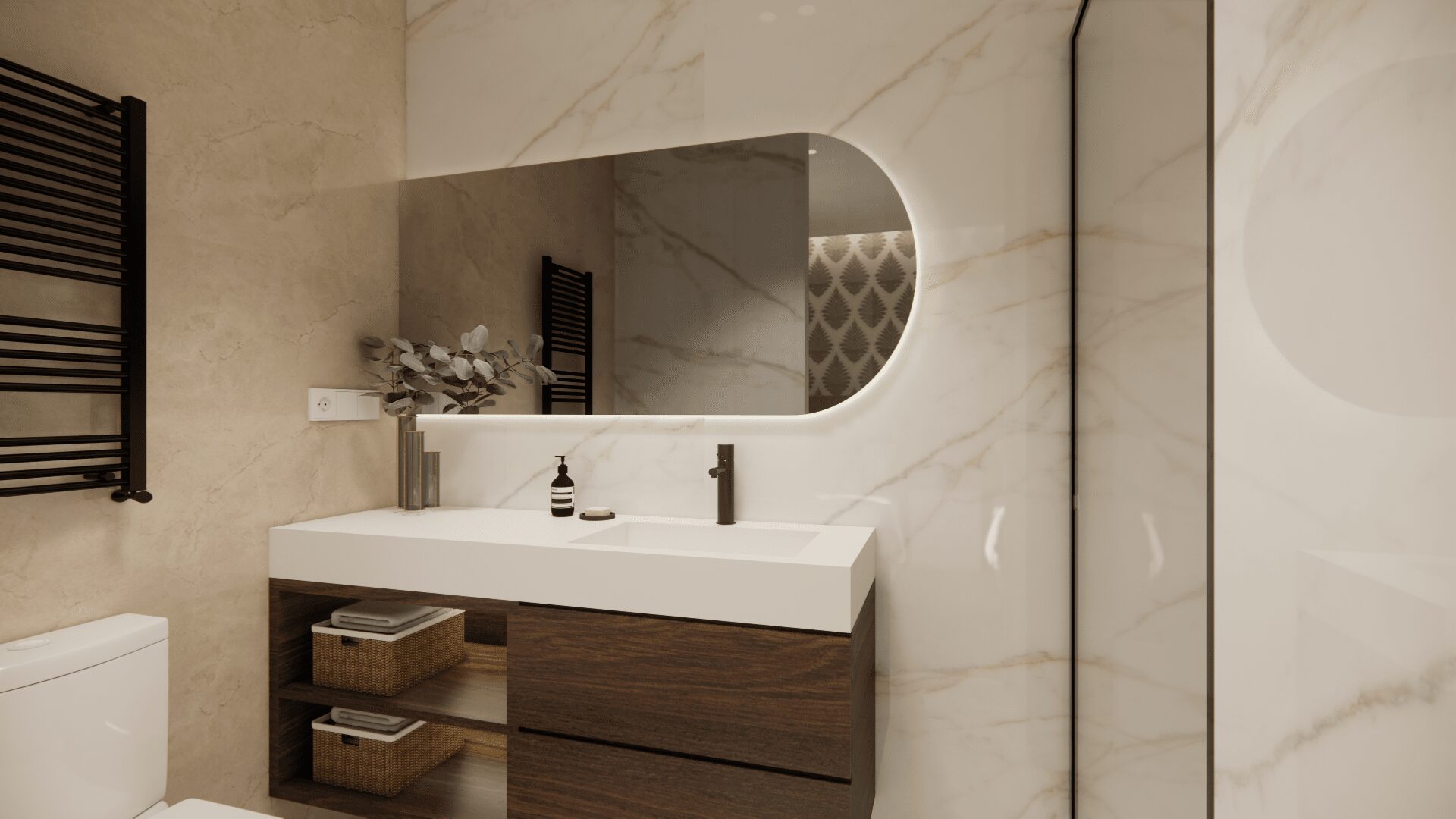 La vivienda se distribuye de manera funcional y eficiente, con un diseño que maximiza el uso del espacio. Consta de tres amplias habitaciones, cada una con baño privado, lo que aporta privacidad y comodidad. Además, dispone de un aseo adicional para invitados. La cocina está completamente equipada, lista para su uso inmediato, y la terraza privada es el lugar perfecto para disfrutar del aire libre. El piso se encuentra en la primera planta de un edificio con ascensor y trastero.