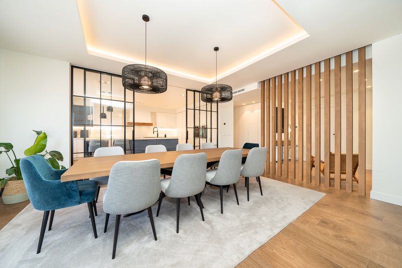 Bernadó Luxury Houses presenta esta impresionante vivienda reformada de 336 m², situada en una sexta planta exterior en Vallehermoso, en el barrio de Chamberí, Madrid.