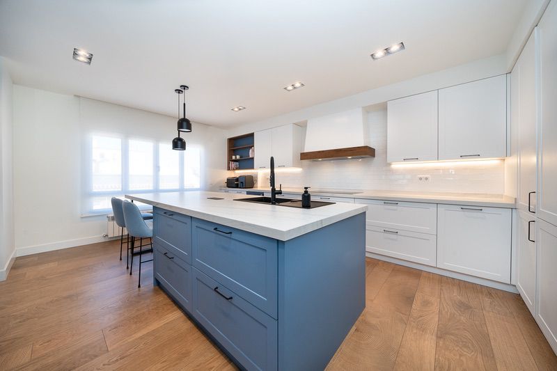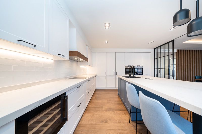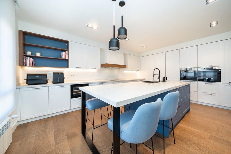 • Cocina de diseño de 25 m² con isla central y equipada con electrodomésticos de alta gama.