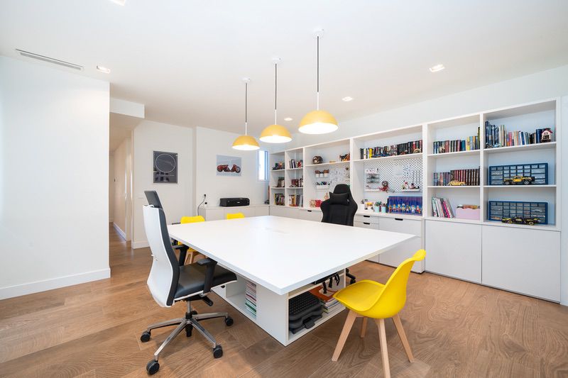 Perfectamente. Dispone de 5 habitaciones, un despacho con salida a terraza y varios espacios versátiles para teletrabajo, estudio o zona de juegos.