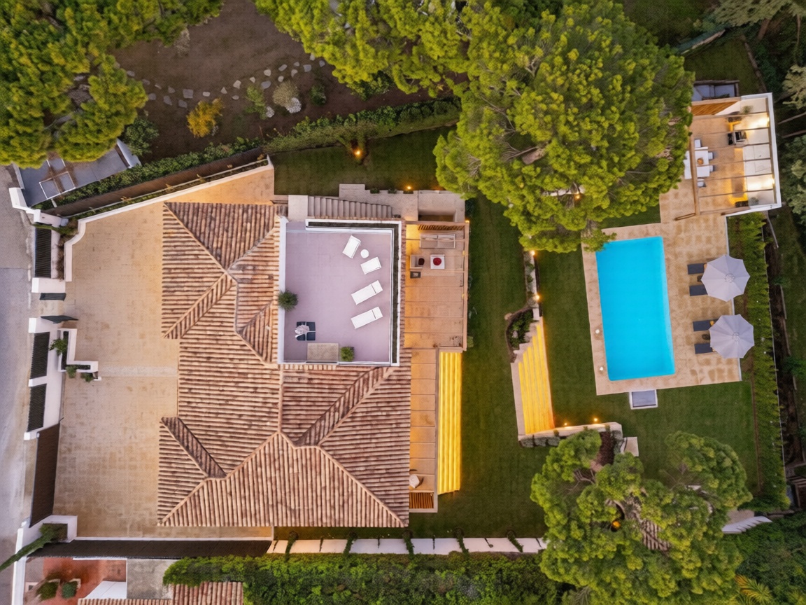 La villa se asienta sobre una parcela de 1.350 m², con una superficie total construida de 510 m², incluyendo 242 m² de espacios interiores elegantes y 45 m² de terraza, además de jardines privados y múltiples áreas exteriores.