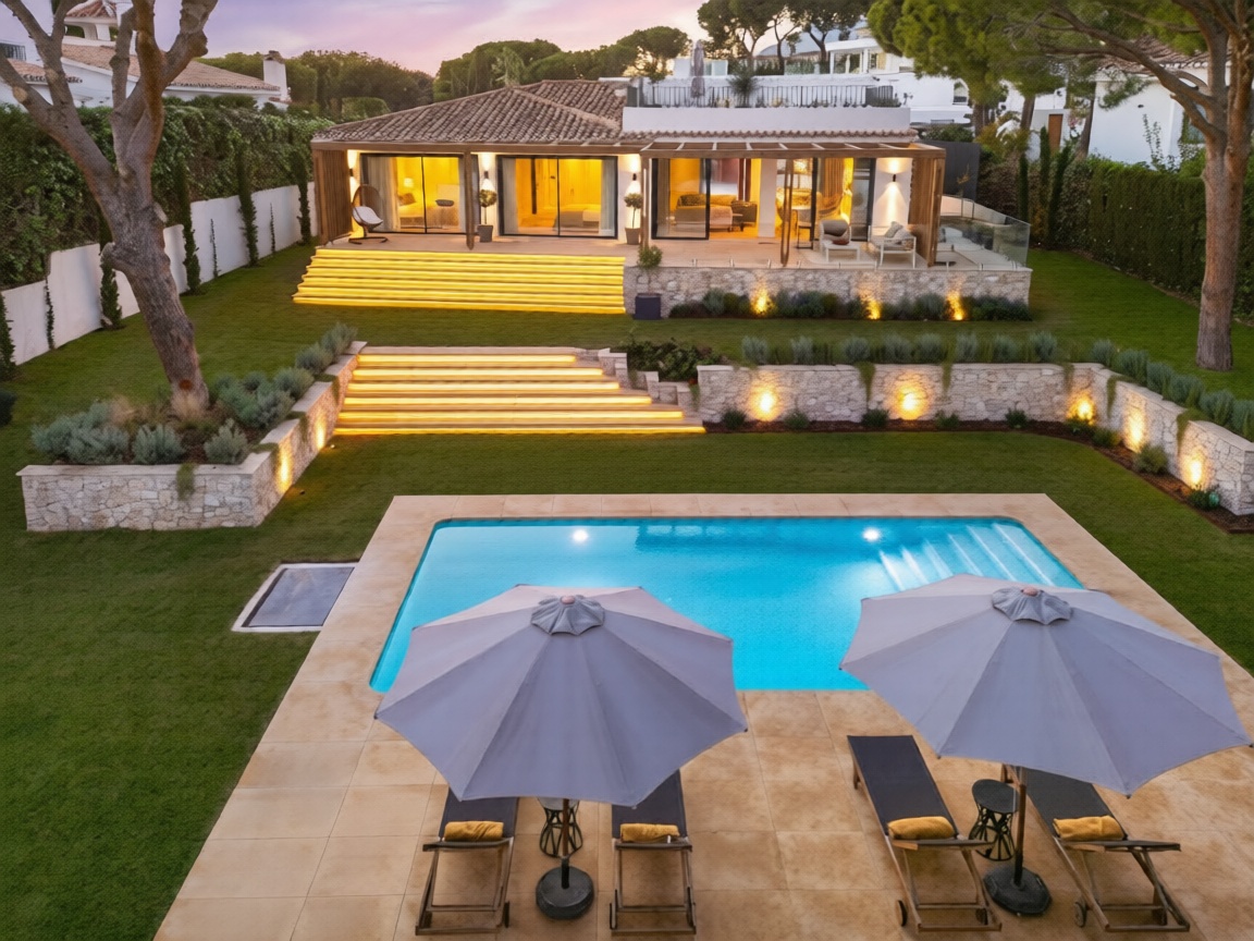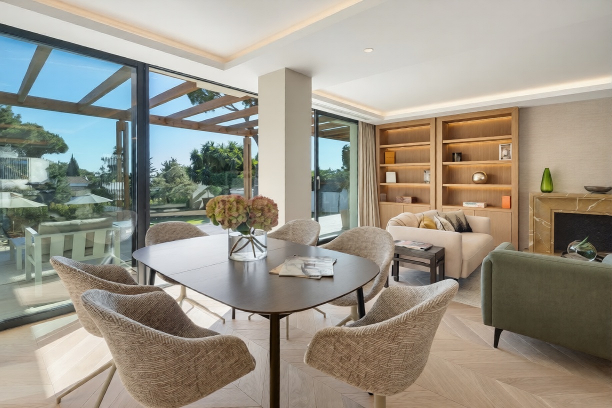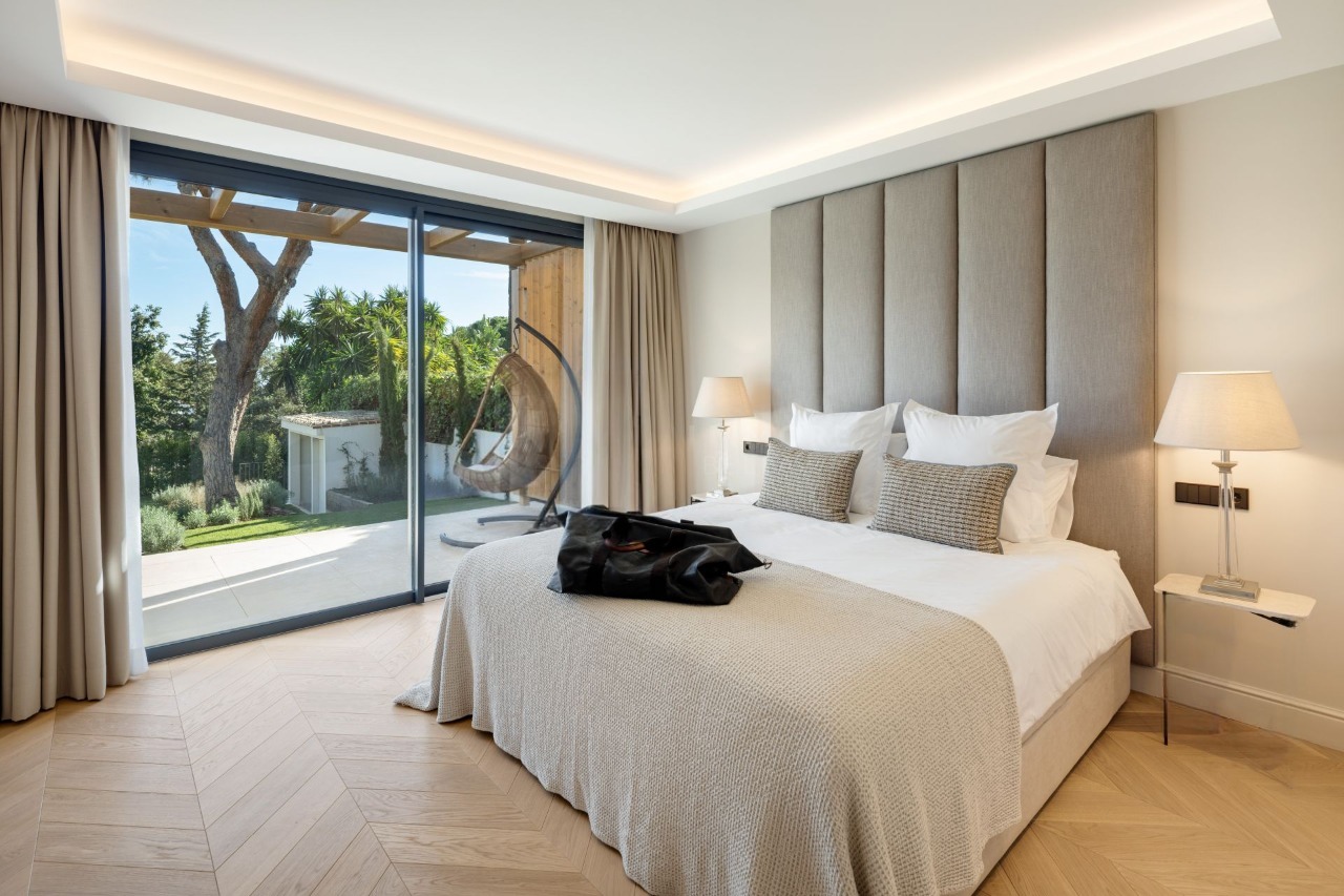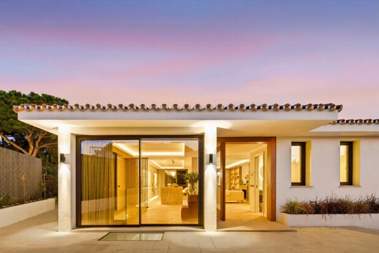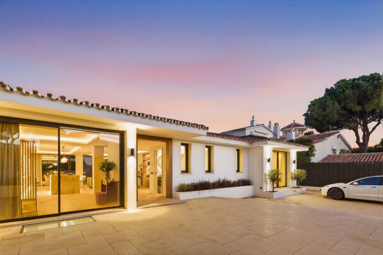 Bernadó Luxury Houses presenta esta excepcional villa completamente reformada situada en Elviria, una de las zonas residenciales más exclusivas de Marbella Este, en la Costa del Sol. Esta propiedad combina un diseño arquitectónico que une sofisticación contemporánea con el espíritu mediterráneo, gracias a espacios fluidos, materiales nobles y una distribución pensada para el bienestar diario. Rodeada de naturaleza y bañada por la luz mediterránea, Villa Alborán ofrece vistas panorámicas al mar y jardines, creando un ambiente único de confort y privacidad.