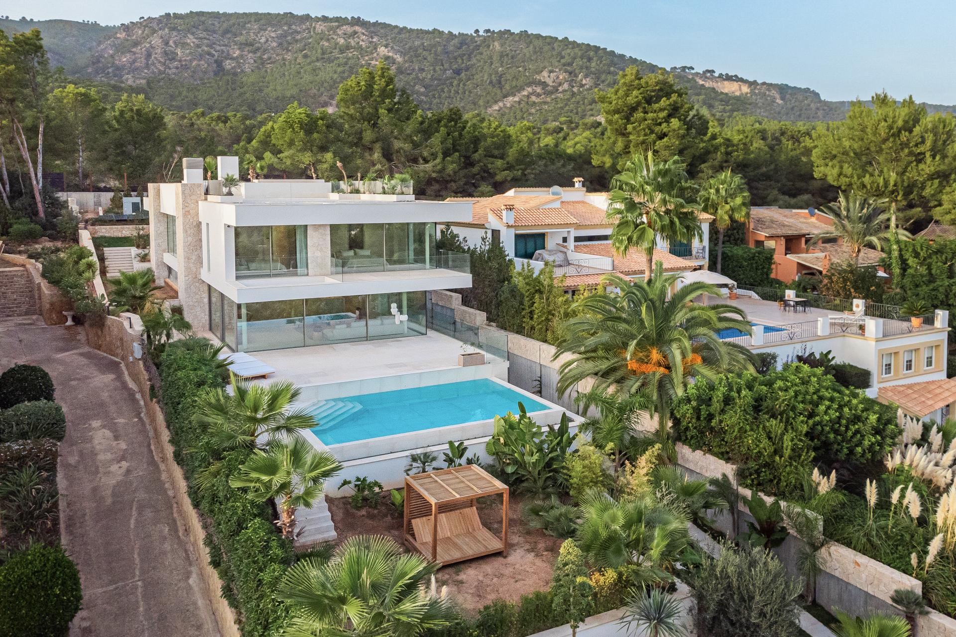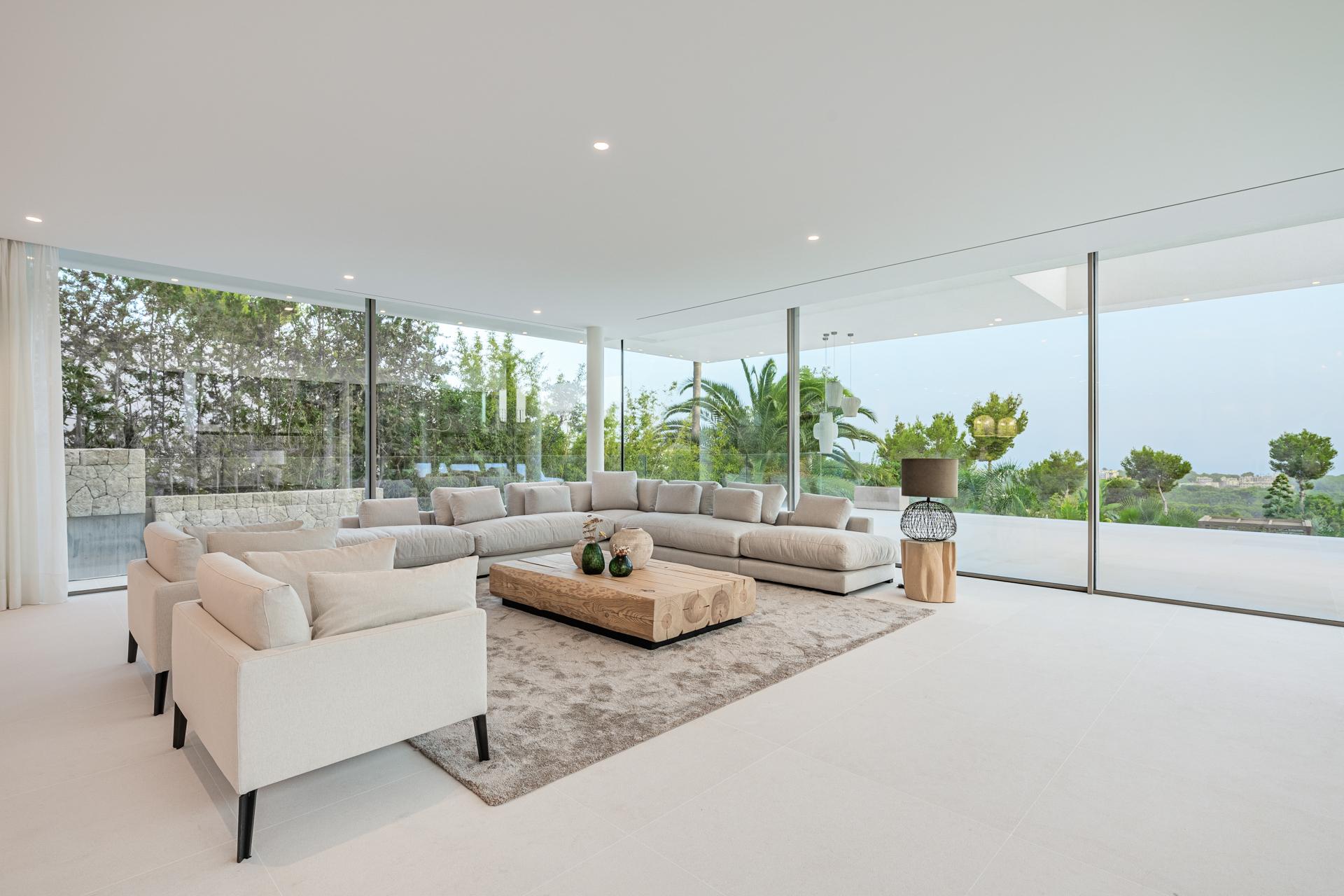 Impresionante villa a la venta en Bendinat, la zona más lujosa del suroeste de Mallorca. Situada en una parcela elevada con vistas al Castillo de Bendinat, al campo de golf Royal Bendinat y vistas panorámicas de la Bahía de Palma, esta casa inteligente autosuficiente de nueva construcción es moderna y consta de grandes espacios abiertos con un diseño interior neutro con acabados de muy buen gusto. Ha sido construido con los más altos estándares de calidad.