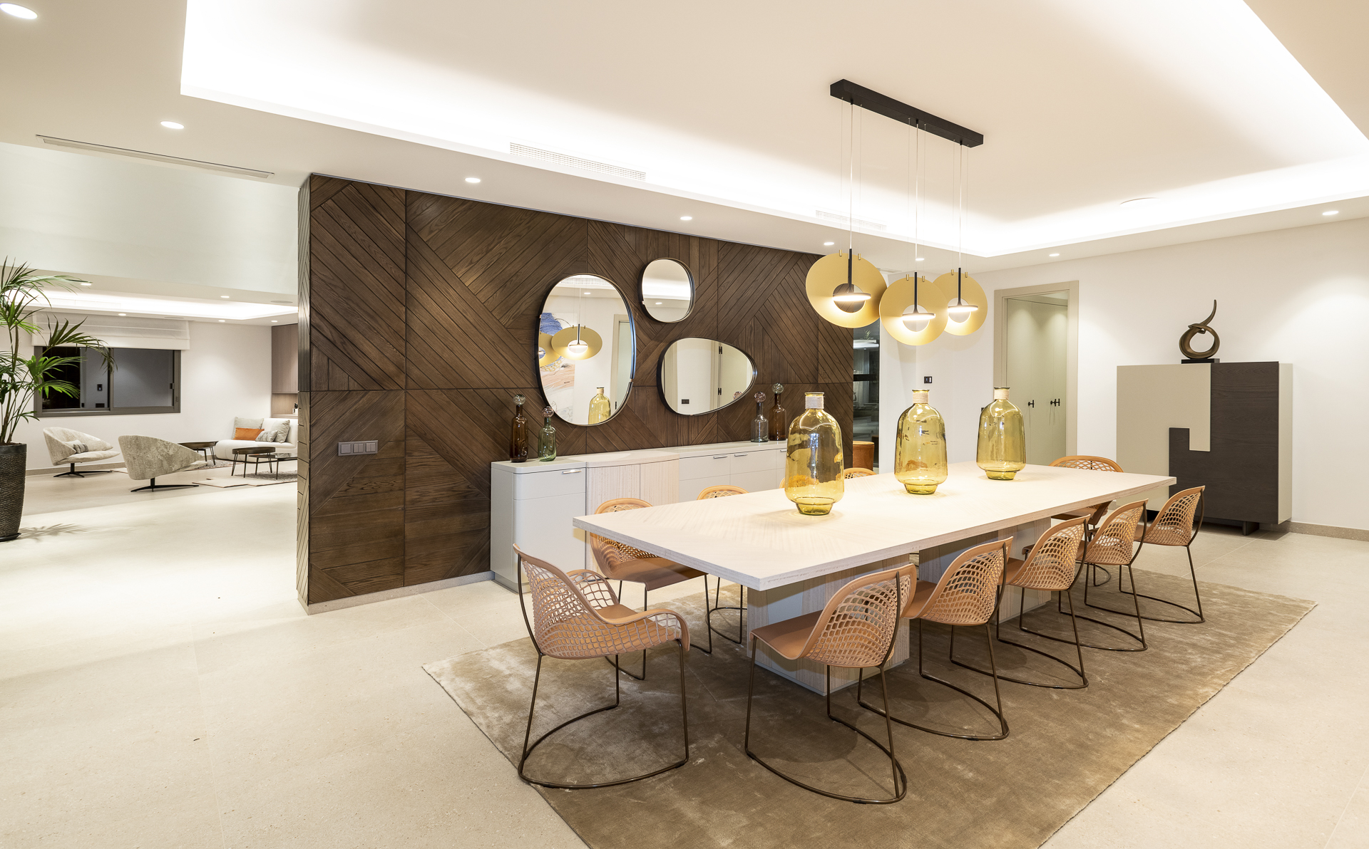 A la propiedad se accede a la vivienda a través de un camino privado majestuoso, que desemboca en un hall de entrada de doble altura con una escalera flotante que marca el tono sofisticado de toda la propiedad. La planta principal alberga un amplio salón, comedor formal, sala de TV, oficina privada y una cocina de diseño con electrodomésticos de alta gama y zona de desayuno. Una suite de invitados y un baño de cortesía completan esta planta.