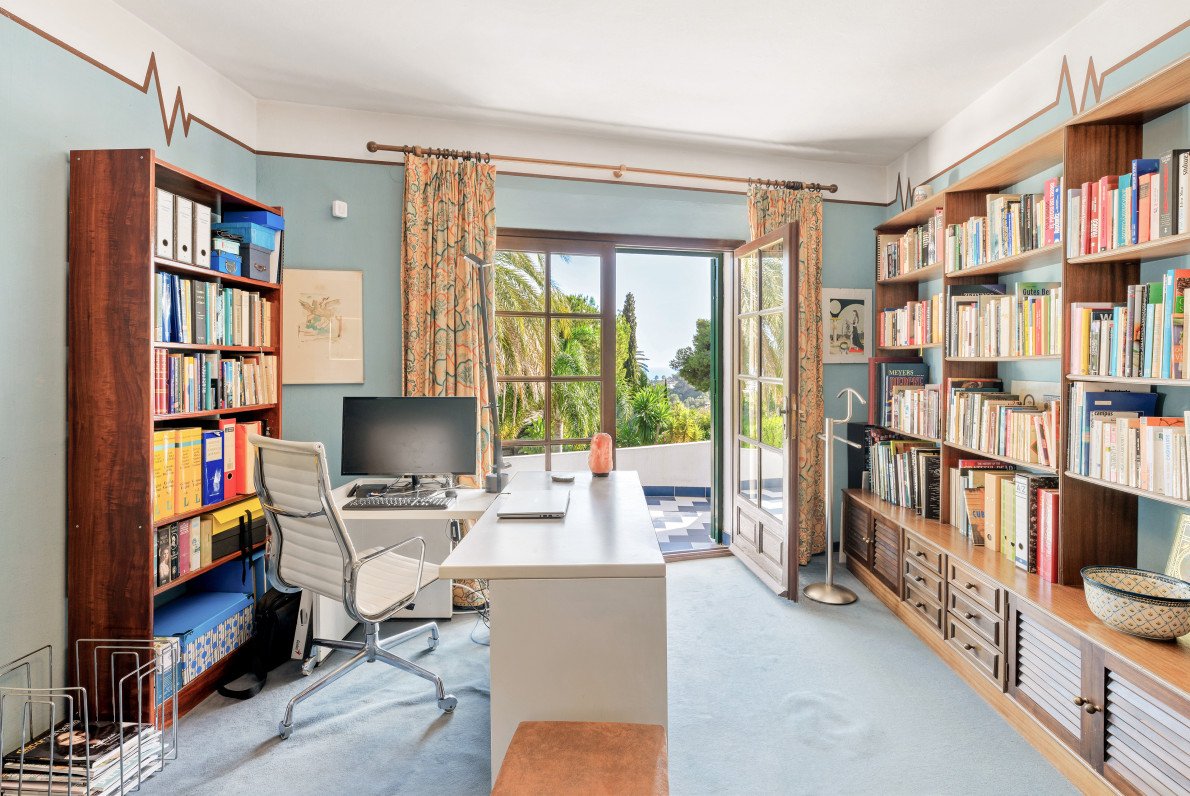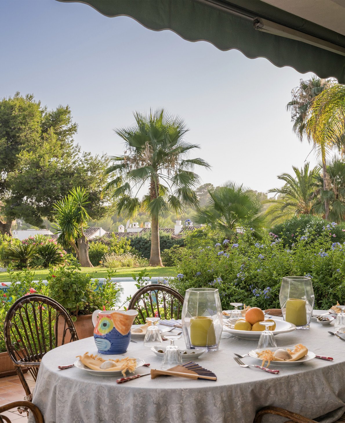 La villa, construida en los años 80, mantiene la esencia de la arquitectura tradicional, con amplias estancias, techos altos, jardín exuberante y múltiples terrazas que invitan a disfrutar del clima mediterráneo durante todo el año.