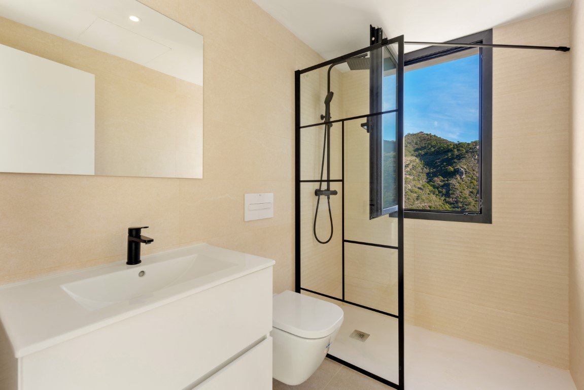 Un espacio abierto donde el salón, el comedor y la cocina se fusionan en un ambiente luminoso y elegante. Las terrazas cubiertas amplían la zona de estar al aire libre, permitiendo disfrutar del clima mediterráneo. La suite principal, con vestidor y baño privado, ofrece un refugio íntimo con vistas privilegiadas al mar y a la piscina infinita.